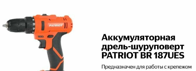 Аккумуляторная дрель-шуруповерт PATRIOT BR 187UES