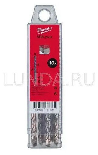 Бур SDS+ 10х210 мм Milwaukee имеет три дополнительных резца, с помощью которых сверление происходит быстрее. Центрирующий наконечник для быстрого засверливания и предотвращения проскальзывания. Благодаря увеличенным фаскам бур не заклинивает в бетоне или кирпиче, а при попадании в арматуру режущие кромки не повреждаются. Уникальная геометрия бура снижает вибрацию при работе. Также бур имеет увеличенные канавки и увеличенный диаметр основного стержня.