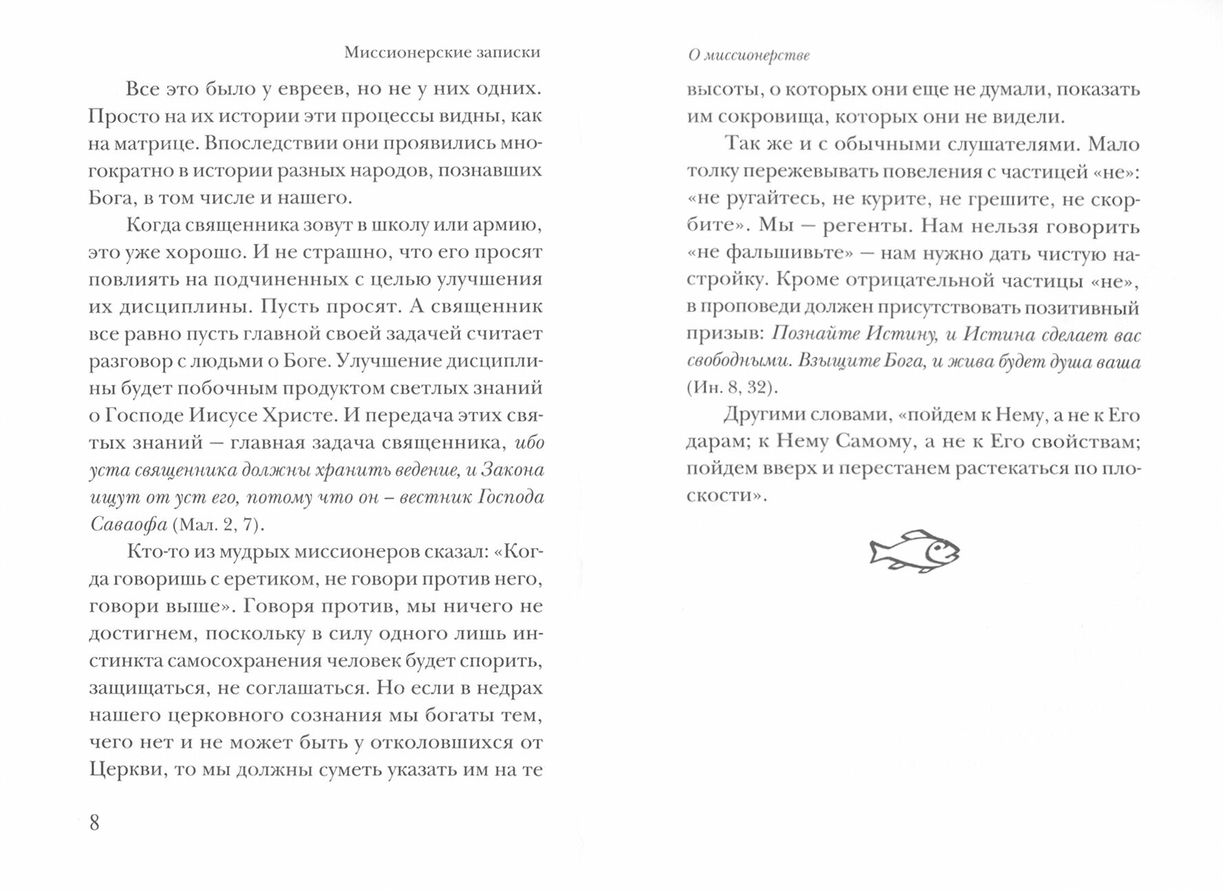 Купил эту книгу из большого уважения к протоиерею Андрею Ткачёву. Её содержание оправдало все мои ожидания. Как всегда всё кратко, ёмко и по делу. Без лишних слов отец Андрей объясняет что же такое миссия и миссионерский компонент, приводя множество различных примеров из жизни современного человека и не только. Книга будет полезна всем, интересующимся Православием.
