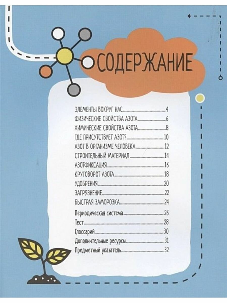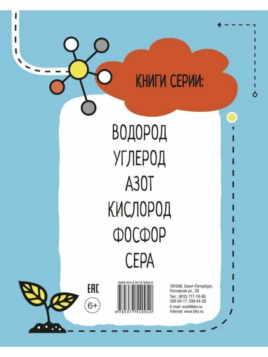 Все живые существа — от микроскопических бактерий до голубых китов — состоят в основном из шести элементов: водорода, углерода, азота, кислорода, фосфора и серы. Эти химические элементы являются строительными блоками жизни на Земле. Каждая книга серии доступным языком рассказывает историю одного из этих элементов, объясняя, что это такое, как он был обнаружен, где присутствует, как взаимодействует с другими элементами и что делает его важным для жизненных процессов. В конце каждой книги юных читателей ждет тест для проверки усвоенного материала.