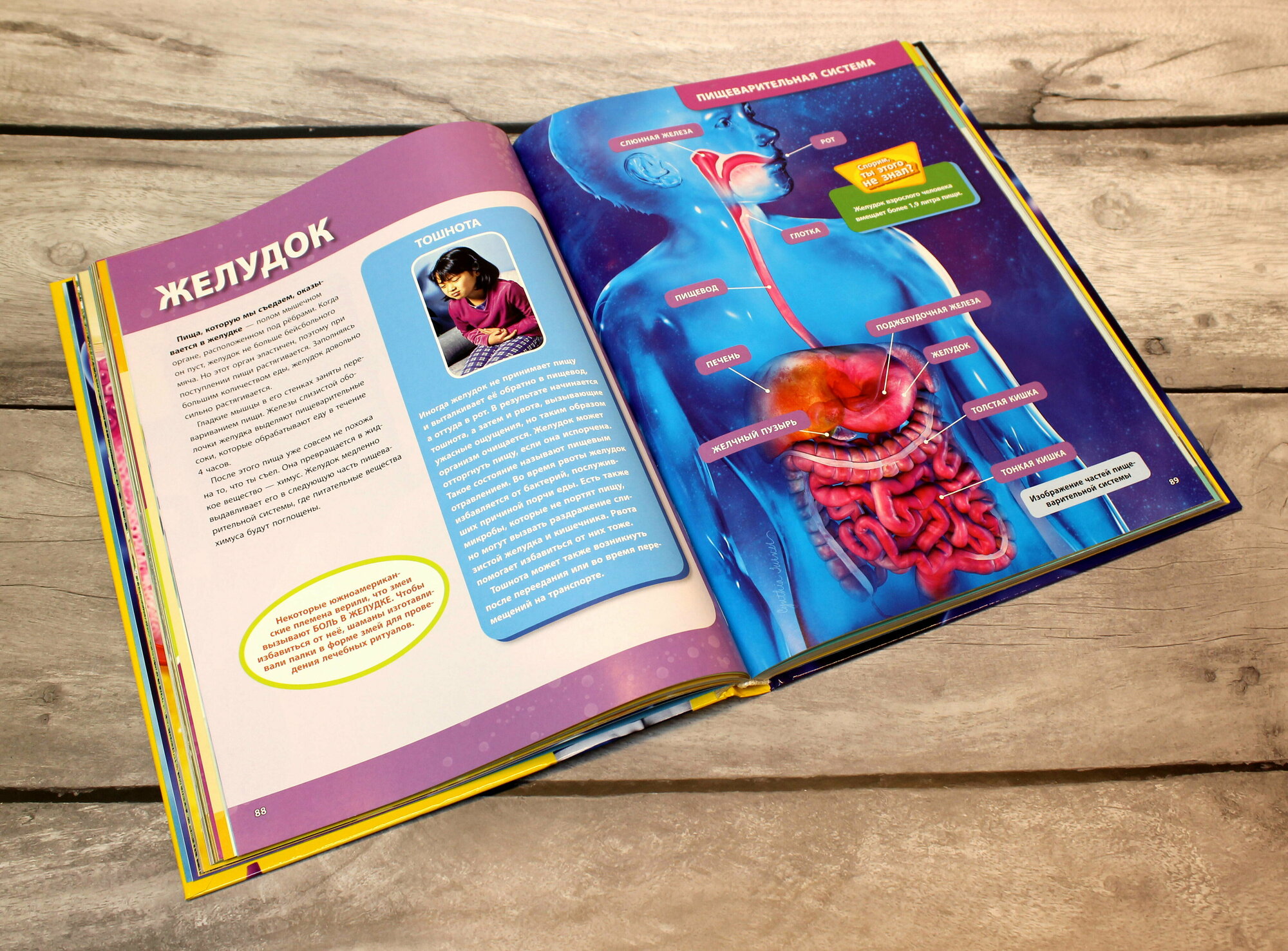Старший сын стал интересоваться анатомией в школе, поэтому решила приобрести эту книгу ему в подарок. Покупкой остались довольны. В книге можно найти много интересной информации о человеческом мозге, органах чувств, о работе различных систем человеческого организма, об иммунитете и пр. Книга не только отвечает на множество вопросов, которые возникают в голове у ребенка, но и развивает в нем тягу к знаниям.