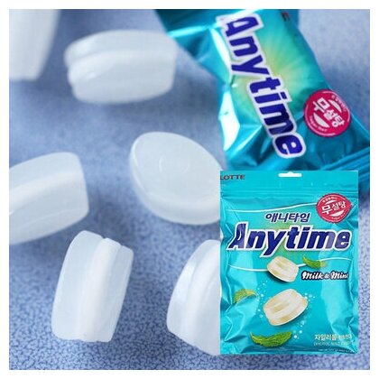 Карамель леденцовая Энитайм молоко и мята эффективно освежает дыхание на долгое время. Низкокалорийные сладости от производителя Lotte с ксилитом не вредят фигуре и вашим зубам. В одной конфетке содержится всего 9 килокалорий и абсолютно нет сахара. Корейские леденцы в индивидуальной упаковке удобно брать с собой и хранить в сумочке или в кармане.