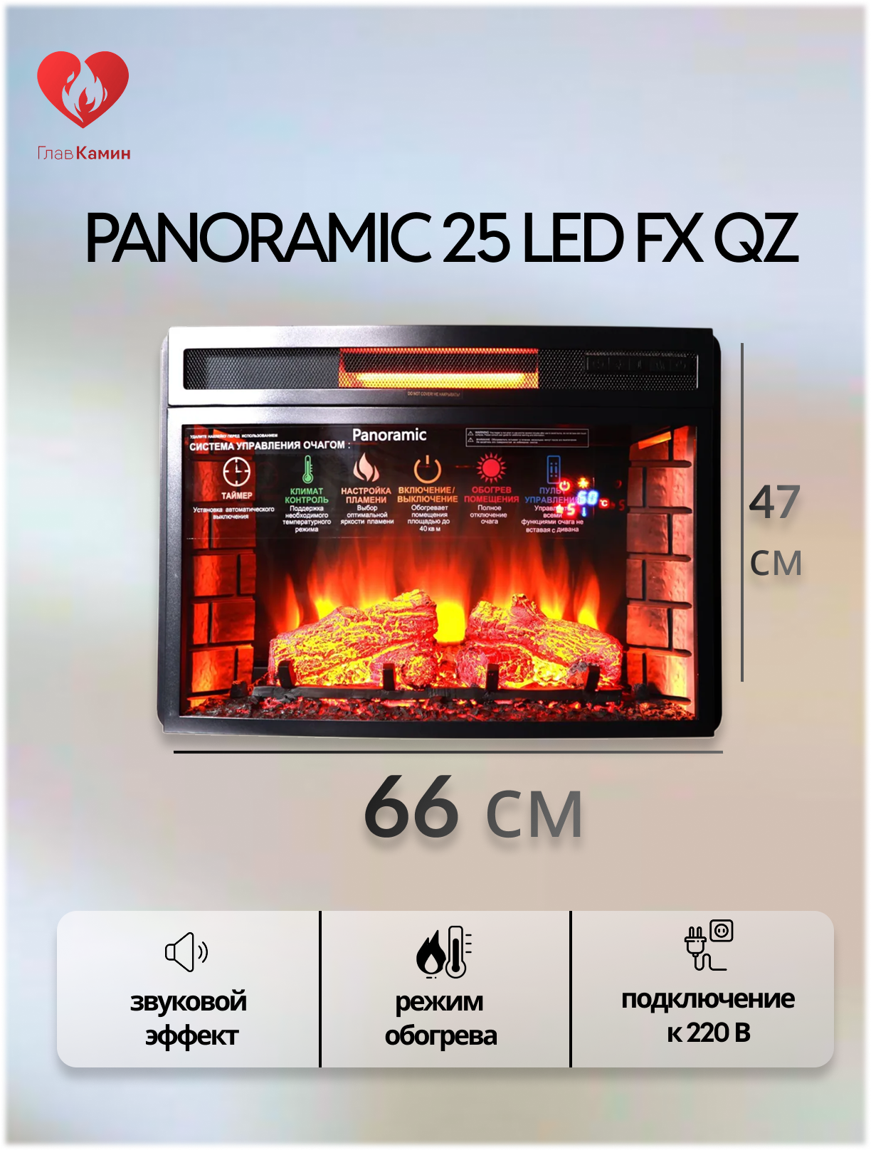 - Panoramic 25 LED FX (Панорамик 25) ВЕРСИЯ 2021 г. популярный очаг для встройки