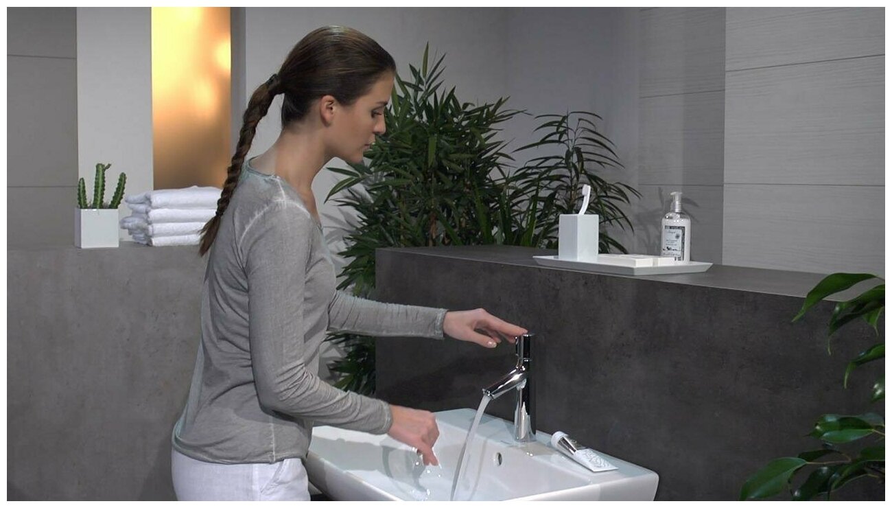 Смеситель для раковины Hansgrohe Talis S New словно поблескивающий космический объект, широкий у основания и сужающийся к изливу, который словно ветвь из дерева выходит из корпуса под углом. Стильно выглядит и утонченный переключатель воды, установленный сверху. Этот смеситель украсит любое помещение. На особое внимание к стилю при разработке модели указывает и литера S рядом с названием коллекции, поскольку под нею Hansgrohe шифрует слово Style.