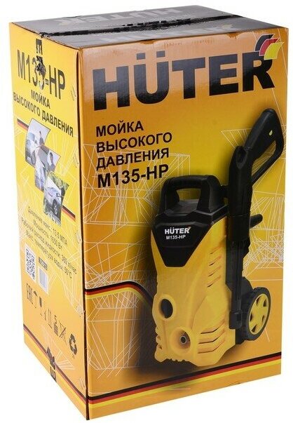 - Есть держатель для хранения пистолета., Тип товаров: Мойки высокого давления HUTER, Вес в упаковке: 7.1 кг, Напряжение сети, В: 220, Гарантия, мес.: 12, Мощность, Вт: 1650, Класс товара: Бытовой, Давление, бар: 90 — 135, Материал: Металл, Страна бренда: Германия, Страна производства: Китай, Тип двигателя: Электрический, Макс. температура воды, °C: 50, Рабочий расход воды, л/ч: 360, Длина шланга, м: 5, Модель: M135-HP