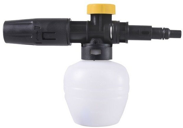 - В комплект поставки входит пеногенератор, насадка для регулировки формы струи (поворотом) либо форсунки.