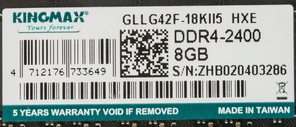 Оперативная память Kingmax DDR4 - 1x 8ГБ 2400МГц DIMM Ret (KM-LD4-2400-8GS)