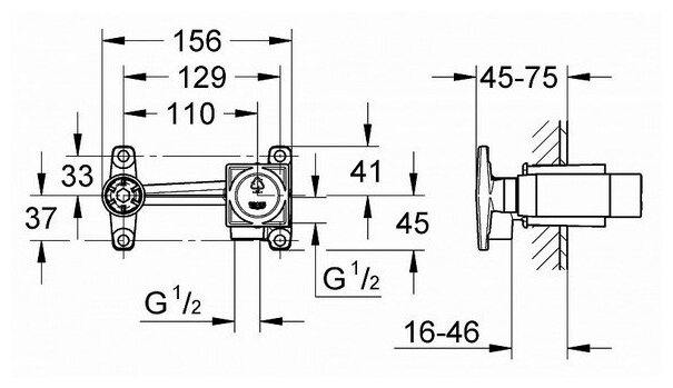 | Особенности, совместимость | встраиваемая часть для смесителя на 2 отверстия для скрытого монтажа без комплекта верхней монтажной части глубина монтажа 45-75 мм шаблон для монтажа |