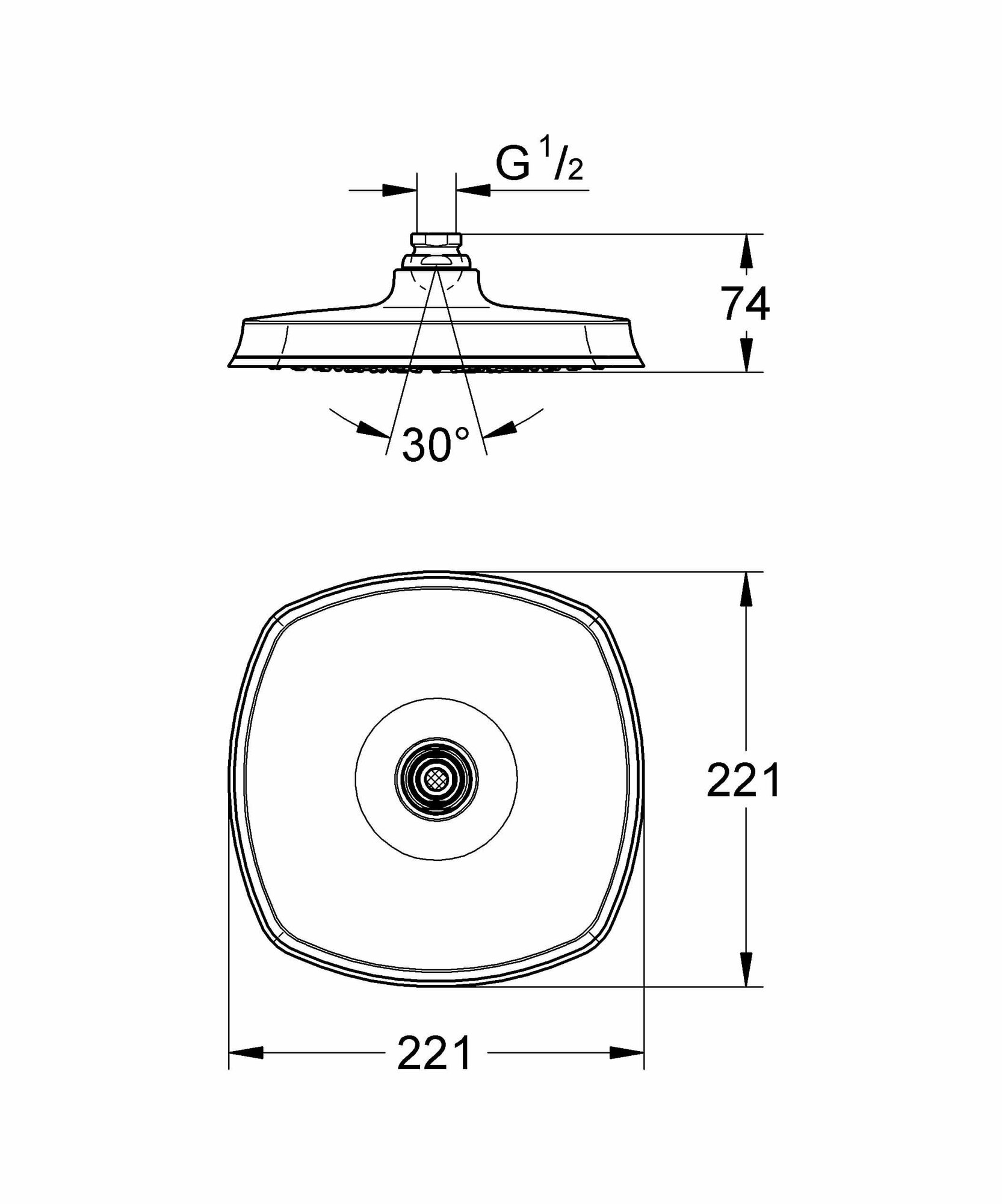 | Диаметр верхнего душа (мм) | 221x221 |