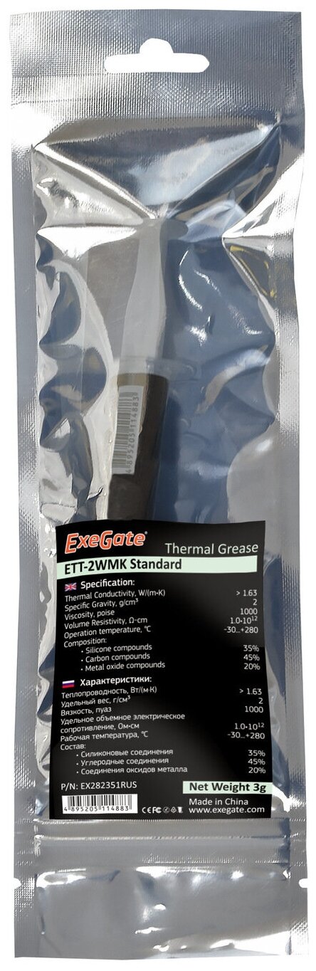 Exegate EX282350RUS Термопаста ETT-2WMK Standard, шприц, 1.5г
