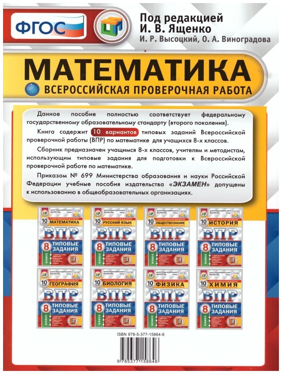 ВПР ЦПМ Математика. 8 класс. Типовые задания. 10 вариантов. (Иван Ростиславович Высоцкий, Иван Валерьевич Ященко, Ольга Александровна Виноградова); Экзамен, 2021