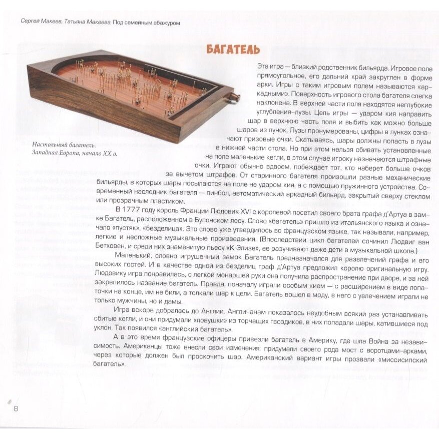 Эта книга - сборник познавательных и занимательных рассказов о настольных играх и домашних развлечениях в XIX-XX веках. Наряду с хорошо известными, в книге представлены и редкие игры, некоторые из них описаны впервые, исследована история их возникновения и формы бытования в разных странах. Книга будет интересна детям и взрослым, педагогам и организаторам детского досуга. Авторы книги коллекционер Т.А. Макеева и писатель С.Л. Макеев собрали значительную коллекцию игр XIX - первой половины XX века, а также произведения изобразительного и прикладного искусства, которые служат документальными иллюстрациями издания.