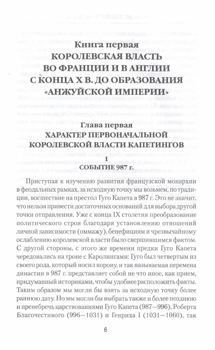 Задача этой книги – показать, как монархия сохранилась и развилась во Франции и в Англии в такую эпоху, когда реорганизация политического общества в формах сеньориальных и феодальных, казалось, осуждала ее на гибель. Мы не старались воспроизвести всю политическую историю Франции и Англии с X по XIII в. Это было время, когда анналы королевской власти, по крайней мере, во Франции, часто оказывались более скудными по содержанию и менее интересными, чем анналы какого-нибудь герцогства или графства, а между тем именно королевской властью мы занялись исключительно. Материальные и моральные причины ее слабости при Эдуарде Исповеднике и Гуго Капете, обстоятельства, содействовавшие тому, что она все-таки выжила и стала расти, учреждения, которые она создала, использовав для этого принципы самого феодализма, неудача сделанных в Англии попыток навязать ей контроль аристократии, – вот то, что мы стараемся здесь выяснить.