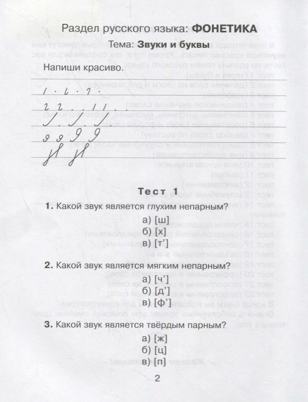 В рабочей тетради есть упражнения, которые помогут научиться младшим школьникам красиво писать. А также предложены проверочные тестовые задания по многим важным темам русского языка.