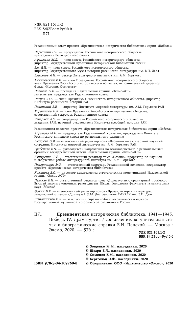 Библиотека Победы. Том 4. Драматургия (Берггольц Ольга Федоровна, Зощенко Михаил Михайлович, Симонов Константин Михайлович); ООО "Издательство "Эксмо", 2020