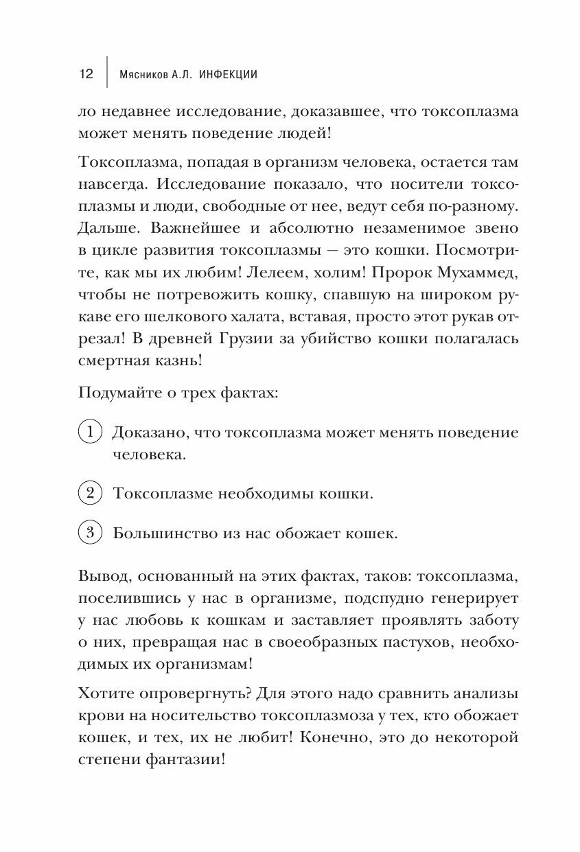 В мире появляются новые инфекции. А все новое, как известно, пугает. Как защитить себя, своих детей и родных? Какие меры нужно предпринимать для профилактики и лечения? Как не потратить деньги впустую, обогатив фармкомпании? Как не поддаться панике? В новом, дополненном издании книги "Инфекции" доктор Мясников подробно рассказывает о том, что нам необходимо знать об инфекциях. От самых страшных и новых, до, казалось бы, давно известных.