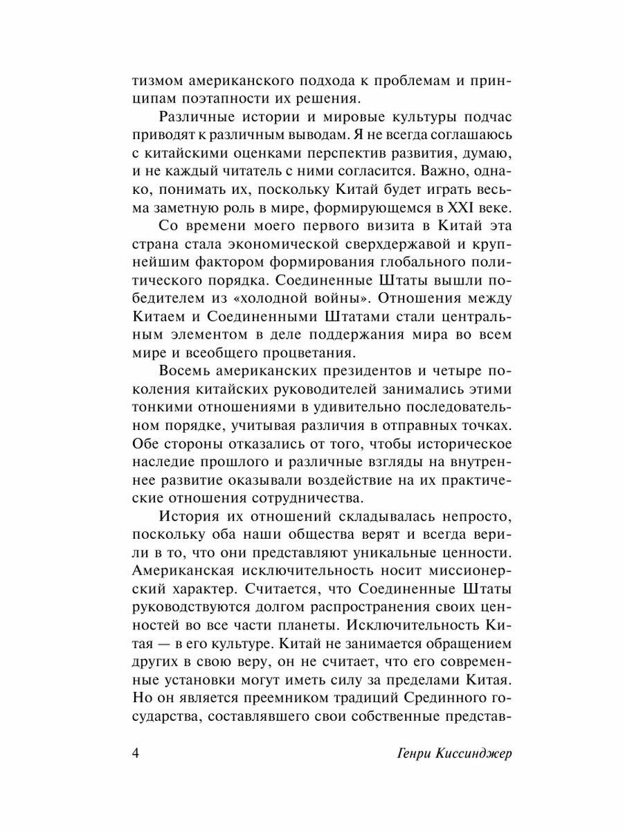 Опираясь на свой богатый опыт общения с китайскими лидерами - Мао Цзэдуном, Чжоу Эньлаем и Дэн Сяопином, Киссинджер размышляет о том, какое влияние каждый из них оказал на судьбу современного Китая, а также делает собственные прогнозы о глобальном соотношении политических сил в XXI веке.