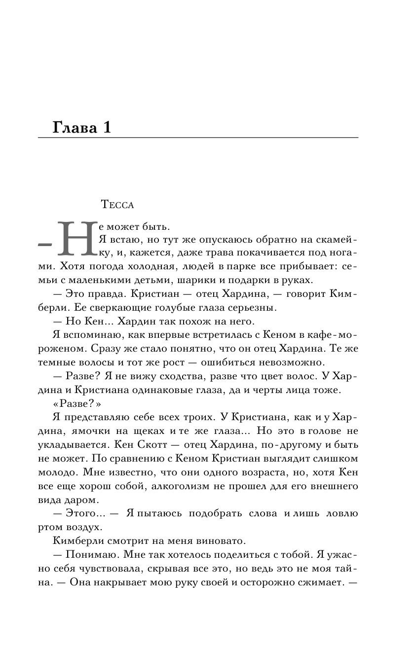 Тесса и Хардин вместе уже год. Они очень изменились — это уже не "плохой парень" и "хорошая девочка". Это "Хесса" — двое людей, которые не могут жить друг без друга. Но судьба испытывает на прочность любые отношения. А в жизни Тессы и Хардина испытания случаются то и дело, словно жизнь решила проверить, насколько сильно они любят друг друга. Ревность, разочарования, депрессия, потеря близких — хватит ли у них сил не сломаться, сохранить свою любовь?