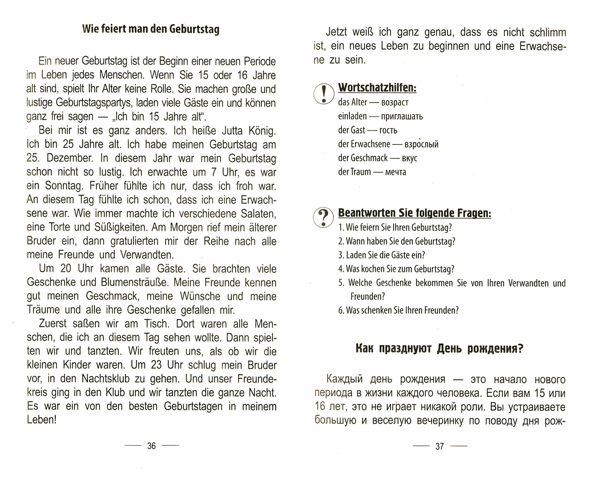 слово Bekanntschaft написано без t в середине слова. И это я только на 30 странице книги, с беглым прочтением, а что там дальше?! В общем автора на мыло, книгу в топку. Никому не советую учить немецкий по данной книге. А если уж купили, без репетитора не читайте, а то "научитесь". -