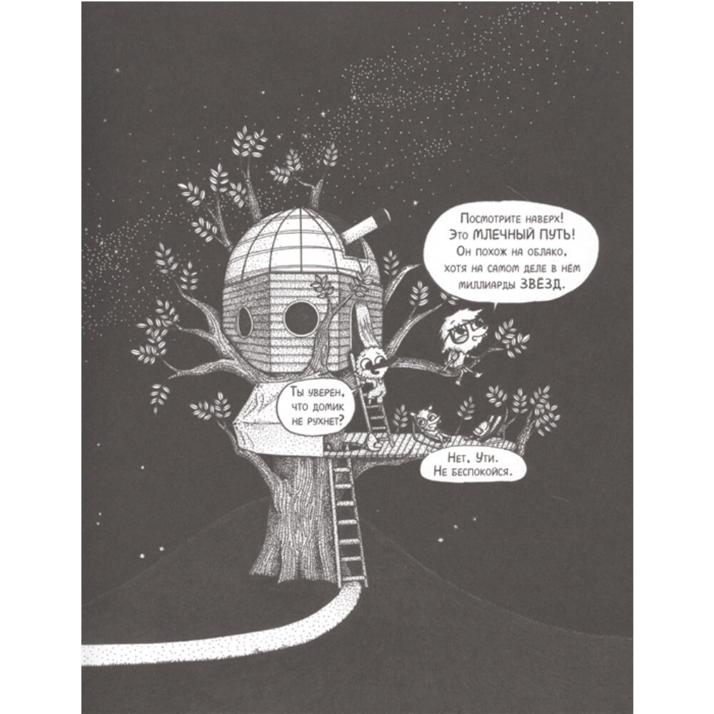 Мышель, Ути и Бобри, герои научно-популярного комикса "Под звездным небом" Гаэль Альмерэ, познакомят с основными понятиями астрономии, помогут разобраться в устройстве нашей Галактики и научат видеть в скоплении звезд созвездия.