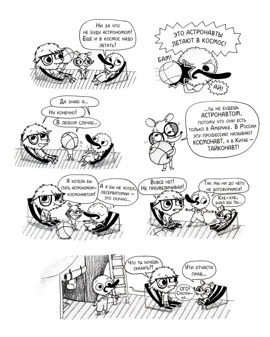 Просто и с юмором герои комикса расскажут о сложных вещах и помогут полюбить астрономию. Гаэль Альмерэ работала над книгой четыре года. Она проделала большую работу — адаптировала и визуализировала достаточно объемный научный материал.
