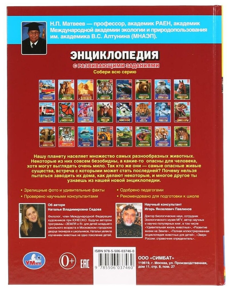 Опасные животные. Энциклопедия с развивающими заданиями (Игорь Яковлевич Павлинов, Наталья Владимировна Седова); Умка, 2019