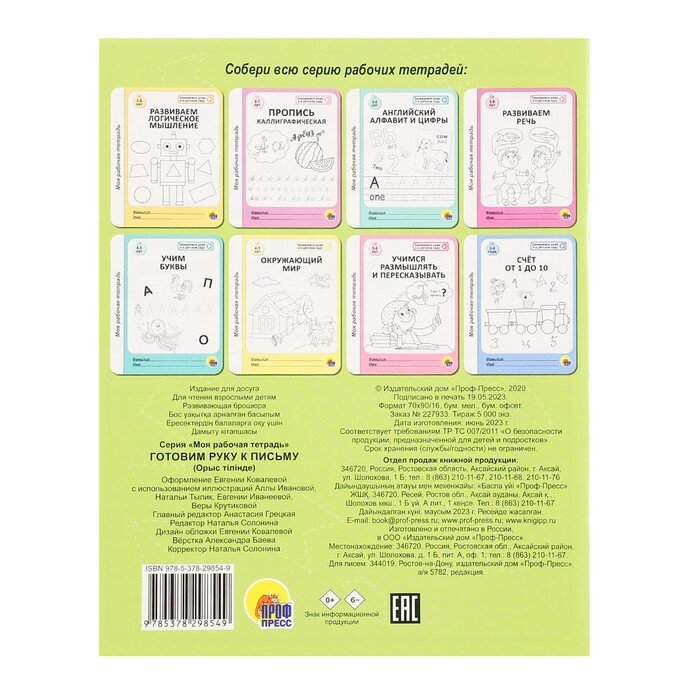 На сегодняшний день товар «Книга: Готовим руку к письму. 4-5 лет (Солонина Н. (ред.)); Проф-Пресс Издательский Дом ООО, 2020» можно купить с кешбеком в 3 магазинах: book24, Читай-город, Буквоед