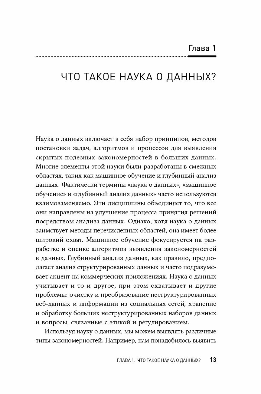 Сегодня наука о данных используется практически во всех сферах: вы видите подобранные специально для вас рекламные объявления, рекомендованные на основе ваших предпочтений фильмы и книги, ссылки на предполагаемых друзей в соцсетях, отфильтрованные письма в папке со спамом. Книга знакомит с основами науки о данных. В ней охватываются все ключевые аспекты, начиная с истории развития сбора и анализа данных и заканчивая этическими проблемами, связанными с конфиденциальностью информации. Авторы объясняют, как работают нейронные сети и машинное обучение, приводят примеры анализа бизнес-проблем и того, как их можно решить, рассказывают о сферах, на которые наука о данных окажет наибольшее влияние в будущем. "Наука о данных" уже переведена на японский, корейский и китайский языки. Цитаты Сейчас процесс сбора, хранения и обработки данных стал как никогда ранее доступен для организаций. Цель науки о данных — улучшить процесс принятия решений, основывая их на более глубоком понимании ситуации с помощью анализа больших наборов данных. Как правило, наука о данных становится полезной, когда у нас есть большое количество примеров и когда выявляемые закономерности слишком сложны, чтобы человек мог обнаружить их самостоятельно. Для аналитиков, программистов и всех тех, кому интересно понять, что такое наука о данных и как ее можно использовать в работе Делитесь вашим мнением о книге в соцсетях с хэштегом #наукаоданных.