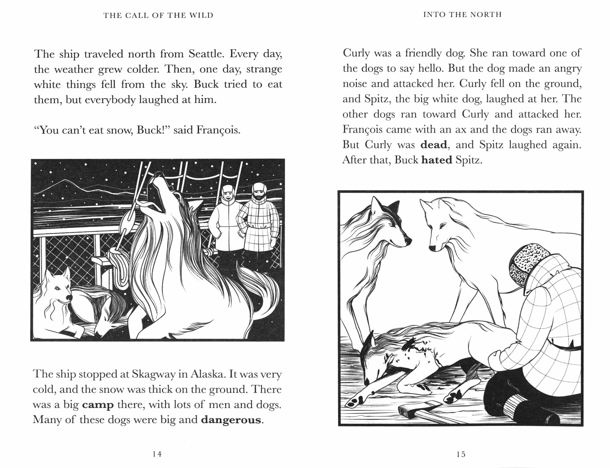 The Call of the Wild, a Level 2 Reader, is A1+ in the CEFR framework. Sentences contain a maximum of two clauses, introducing the future tenses will and going to, present continuous for future meaning, and comparatives and superlatives. It is well supported by illustrations, which appear on most pages.