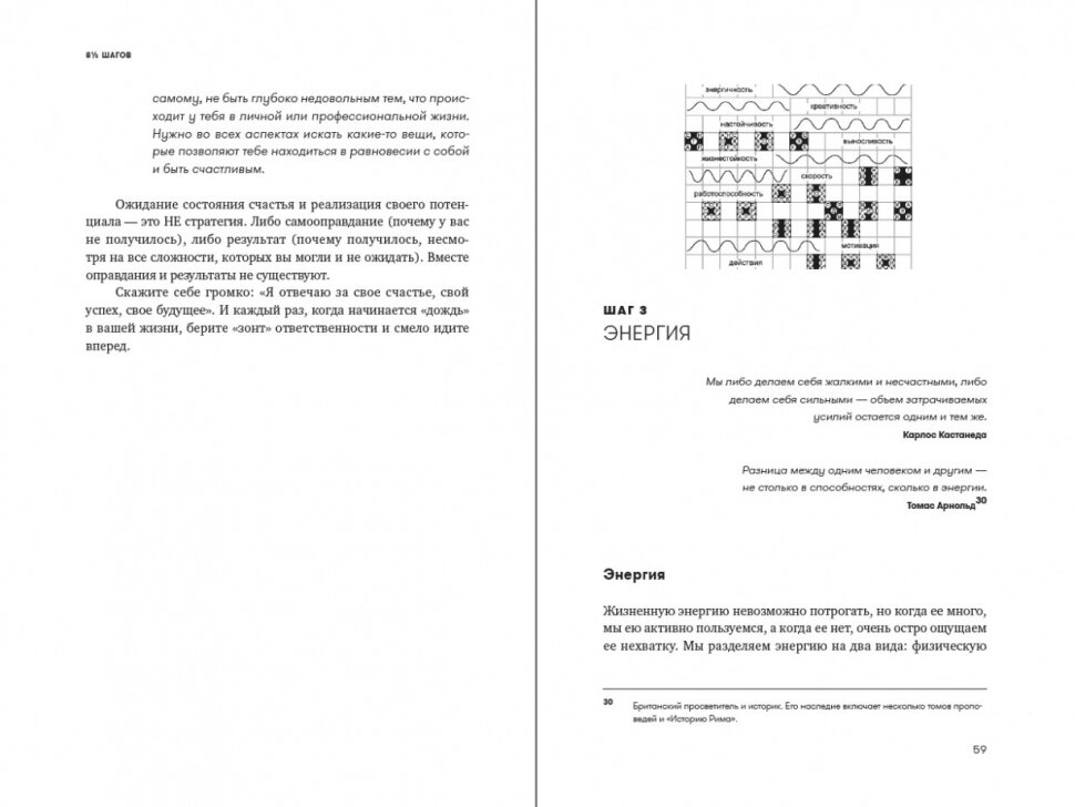 В этом плане книга «8 ½ шагов. Жить, любить, работать на полной мощности» для меня стала образцом ненавязчивой, но жизнеутверждающей литературы. Как иначе можно отнестись к книге, когда на ее страницах собраны истории таких удивительных женщин, как Опра Уинфри (уверена, многие знают какая тяжелая история предшествовала ее успеху), Наталья Водянова, Наталья Синдеева.