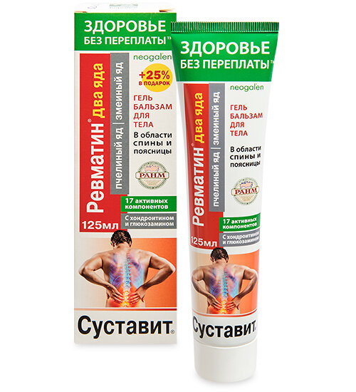 Сервис сравнения цен СкидкаГИД предлагает сравнить цены на товар «Неогален гель-бальзам для тела "суставит.ревматин. пчелиный яд. змеиный яд" "здоровье без переплаты" туба 125мл ООО "КоролёвФарм" (1089041)»