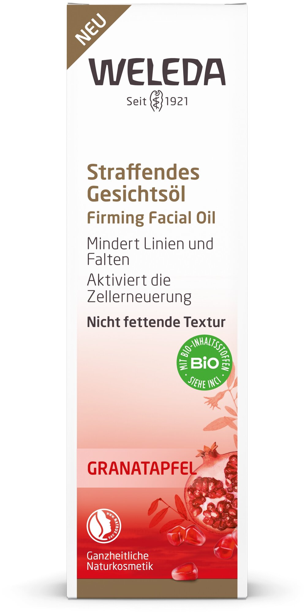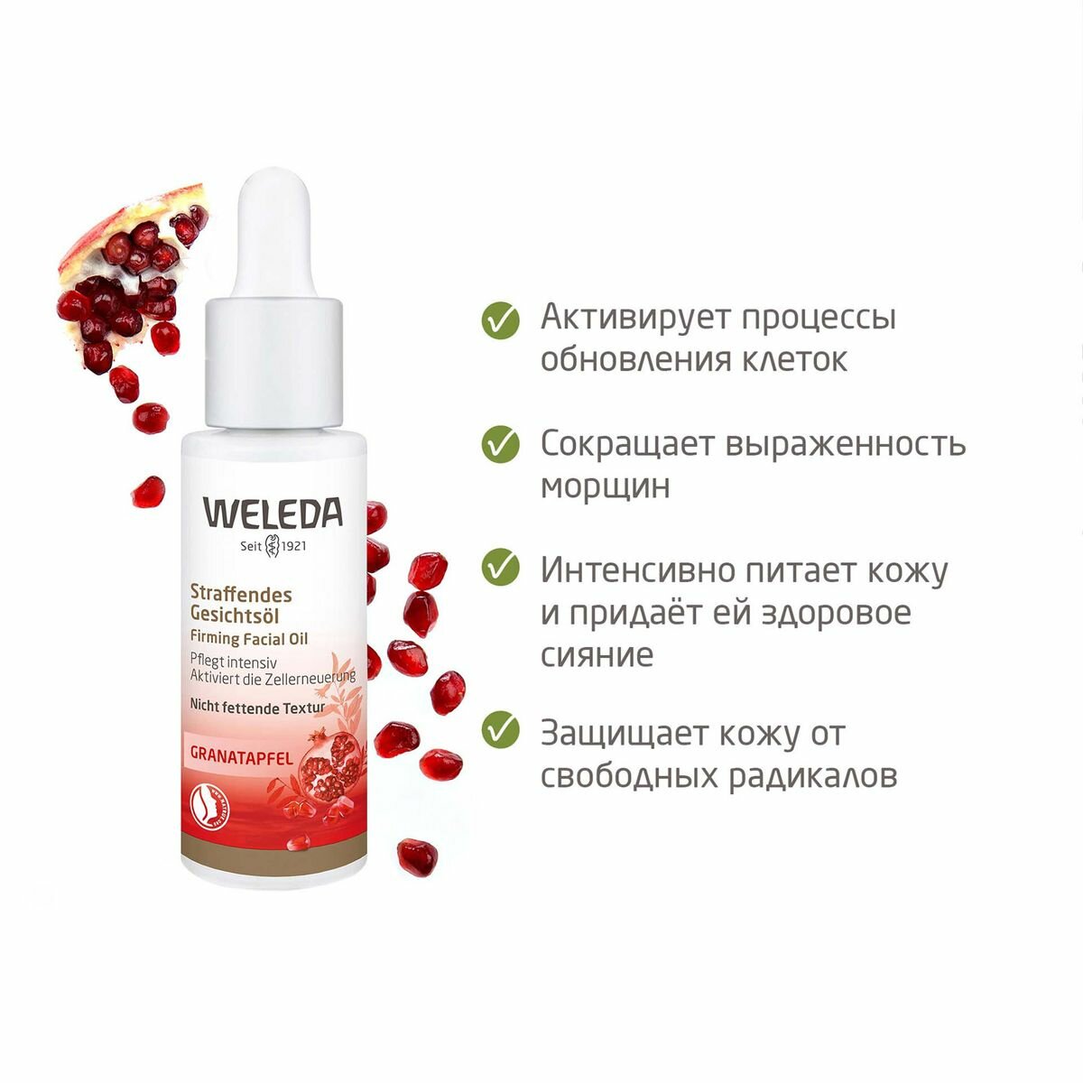 100 лет экспертизы мирового лидера натуральной косметики Weleda Weleda Гранатовое масло-лифтинг для лица 30 мл Композиция из 8 органических масел интенсивно питает кожу и придает ей здоровое сияние. Является мощным антиоксидантом, защищает от свободных радикалов и укрепляет естественные барьерные функции кожи. Масло – лифтинг активирует внутренние силы, замедляет процессы старения кожи и сокращает выраженность морщин, а также быстро впитывается, не оставляя жирной пленки на лице, делая кожу мягкой и шелковистой. Результаты дерматологических тестов после 4их недель использования 91% респондентов почувствовали питательный эффект масла и 83% согласились, что тонус кожи повысился. Способ применения: Согрейте несколько капель в руках и наносите на слегка влажную чистую кожу утром и вечером. Можно добавить несколько капель масла в крем для ежедневного ухода. Возможно наносить как основу под макияж. Подходит для ежедневного ухода.