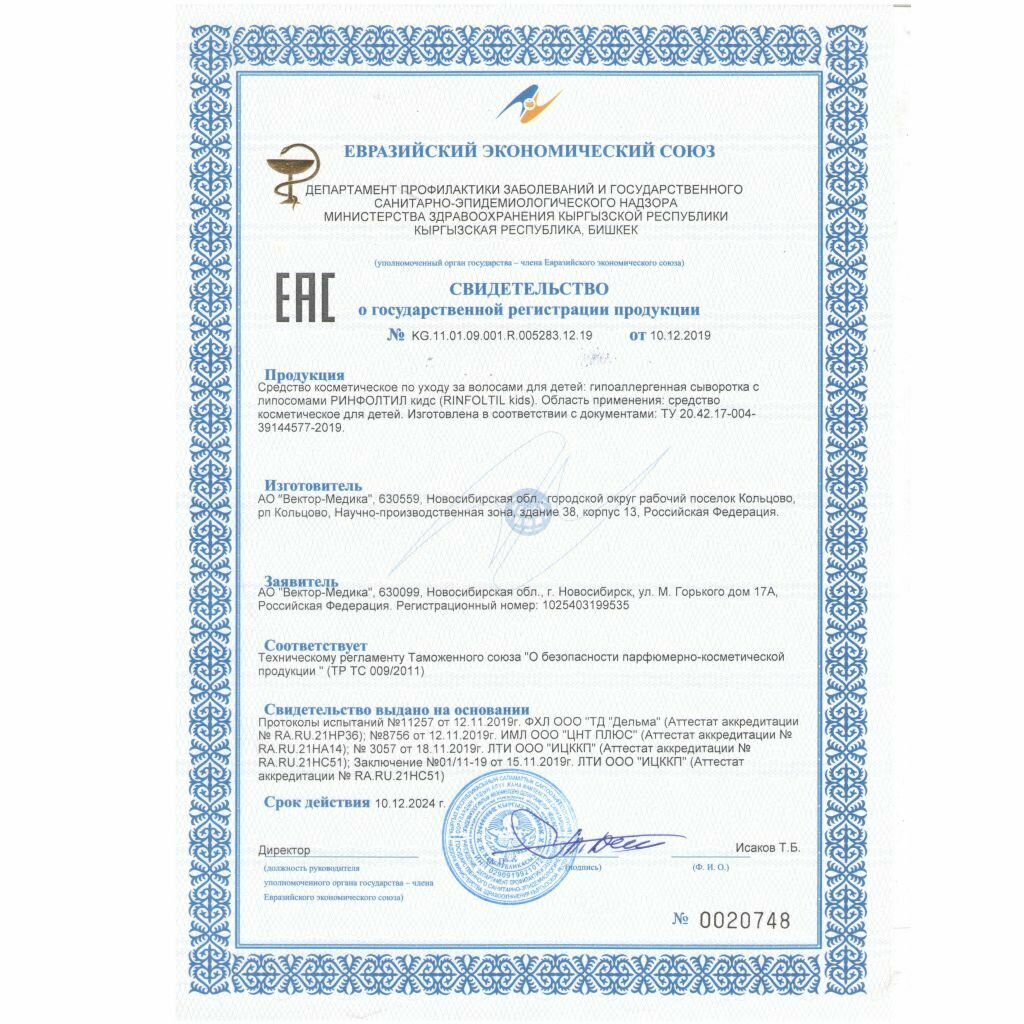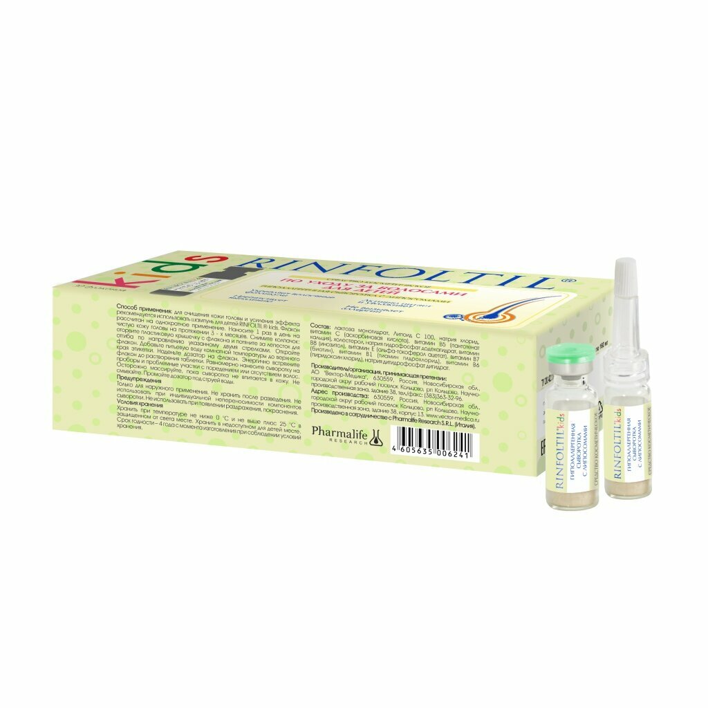 Гипоаллергенная сыворотка с липосомами RINFOLTIL® kids создана специально для детей и подростков на основе научных разработок, ее действие направлено на предотвращение выпадения волос и возобновление их роста. Липосомы - это микроскопические сферы размером до 200 нм, оболочка которых состоит из фосфолипидов - основного структурного компонента мембран клеток. Благодаря своей структуре липосомы биосовместимы с липидными слоями мембран и легко сливаются с клетками, что обеспечивает адресную доставку биологически активных компонентов, заключенных внутрь липосом, непосредственно к месту назначения. Благодаря своим размерам и структуре липосомы легко проходят эпидермальный барьер, проникают в глубокие слои кожи и непосредственно в волосяные фолликулы. Гипоаллергенная сыворотка с липосомами безопасна для детей и подростков: укрепляет волосяные фолликулы;препятствует выпадению волос;активно питает и увлажняет; Гипоаллергенный сбалансированный комплекс включает витамины:В1 напрямую воздействует на луковицы, помогая восстановить и укрепить структуру волосяного стержня;В5 помогает регулировать внутренние обменные процессы в луковице и увеличивает интенсивность ростовых процессов, укрепляет волос и препятствует его выпадению,В6 питает корни волос, оказывает поддержку в росте и помогает им сохранять влагу;В7 является одним из главных компонентов в профилактике выпадения волос, играет важную роль в питании волосяных фолликул;В8 способствует сокращению выпадения волос, защищает их от агрессивного внешнего воздействия, а также способствует предотвращению развития патологии волос.С блокирует действие свободных радикалов, оказывает стимулирующее действие на волосяные фолликулы;Е улучшает кровообращение, обладает мощным увлажняющим и антиоксидантным эффектом. Технология липосомирования – это инновационная форма доставки активных веществ точно в цель, многократно увеличивающая их биодоступность. Нейтральный рН. АО «Вектор-Медика» - производитель лекарственных препаратов, биологически активных добавок и косметики на рынке с 1990 г. Система менеджмента качества АО «Вектор-Медика» соответствует требованиям ISO 9001-2015. Свидетельство о государственной регистрации KG.11.01.09.001.R.005283.12.19 от 10.12.2019. Произведено в сотрудничестве с Pharmalife Research srl (Италия).