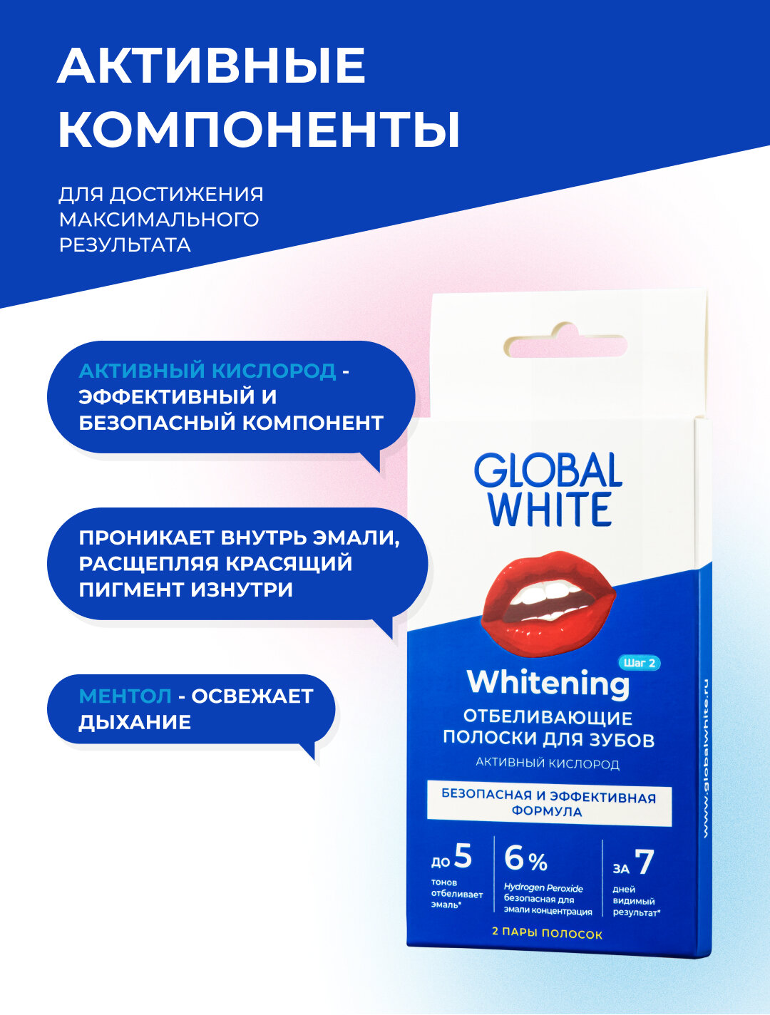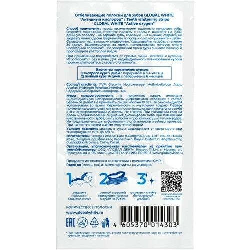 Глобал вайт полоски отбеливающие для зубов "активный кислород" 2 пары Onuge Personal Care (Guangzhou) Co., Ltd (1092845)