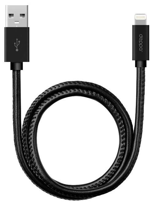 Кабель для iPod iPhone iPad Deppa MFI, 1,2 м Leather, черный (72266)
