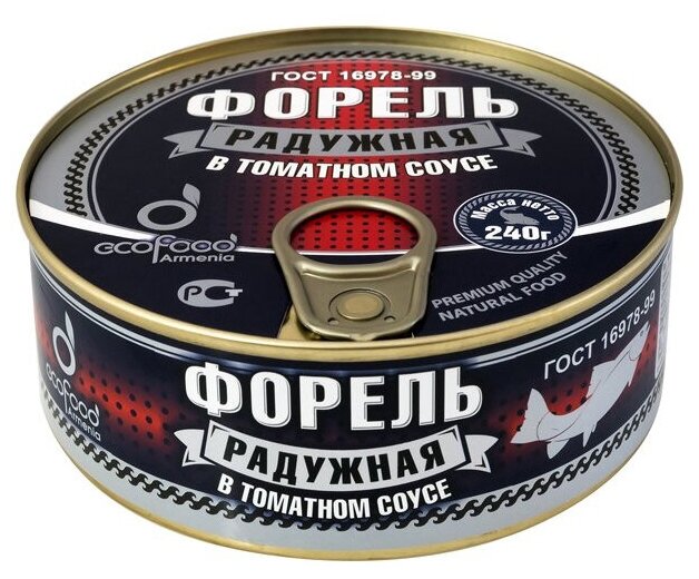 Радужная форель в томатном соусе - полностью готовая к употреблению закуска. Произведена в Армении исключительно из натуральных ингредиентов. Томатный соус делает вкус деликатеса более ярким и сохраняет сочность мяса. Рыбка обладает нежной текстурой, но при этом не разваливается. Консервы можно есть просто так, добавлять в супы, салаты, начинки для пирогов и кишей. Кусочки рыбы станут замечательным сопровождением к гарниру из картофеля, риса или макарон. Чистый состав.
