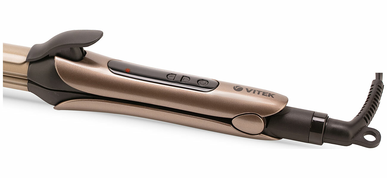 Мультистайлер Vitek CM в пластиковом корпусе весом 680 г помогает своим обладательницам быстро и без усилий создать красивую прическу. С электронным типом управления можно легко подобрать нужный режим под свой тип волос.