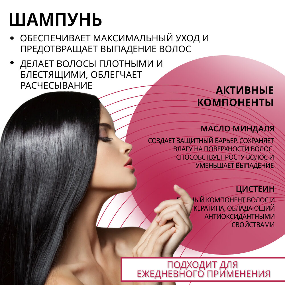 | Назначение | Естественный блеск и сияние, Легкое расчесывание, Очищение волос и кожи головы, Профилактика и устранение выпадения волос, Уплотнение волос |