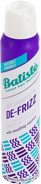 Сухой шампунь Batiste De-Frizz восстанавливает объем и освежает вид волос. Усовершенствованная формула с кокосом нацелится на самые вьющиеся участки ваших волос, делая их мягкими и гладкими, при этом удаляя излишки жира. Легкие и без белого налета, волосы мгновенно выглядят и чувствуют себя послушными после всего лишь одного использования