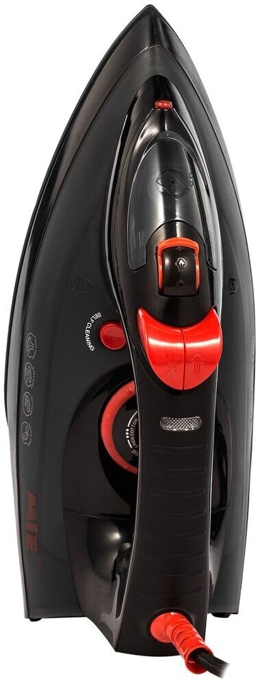 Благодаря современной системе парогенерации модель MIE может работать в режиме горизонтального глажения или вертикального отпаривания. Прибор оснащён кнопкой разбрызгивания воды для увлажнения изделия при сухом глажении, а также кнопкой подачи пара, с помощью которой можно отпаривать одежду вертикально.