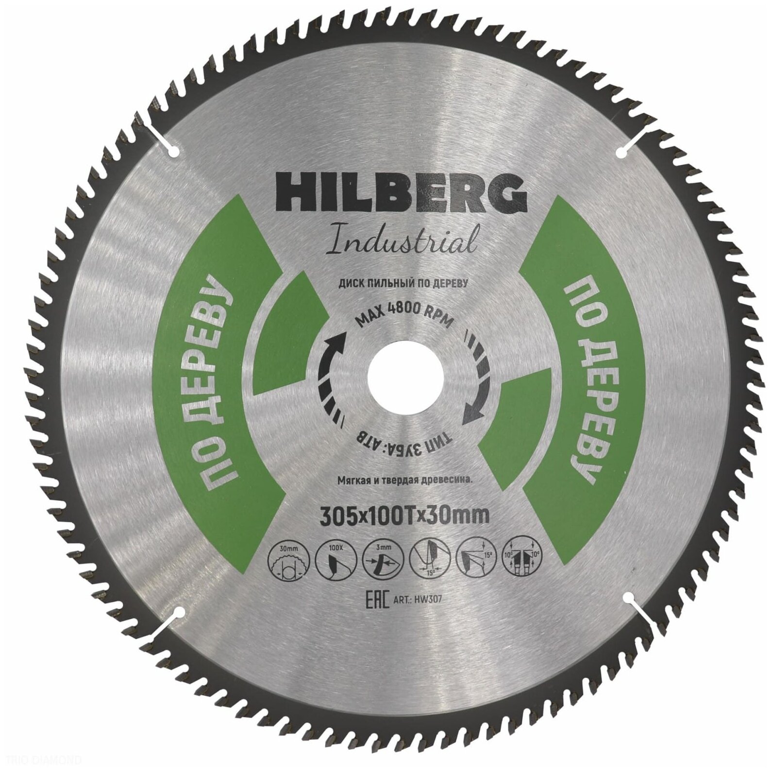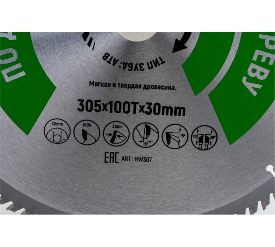 - Диск по дереву Hilberg HW307 305*100Т*30. Резка древесины, фанеры, ДСП кругом