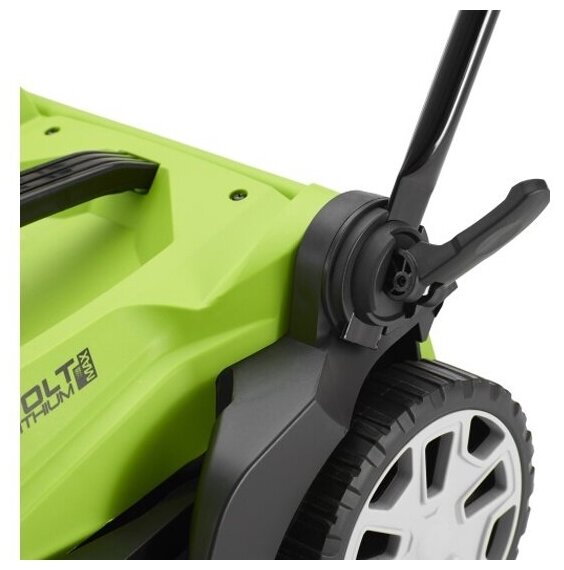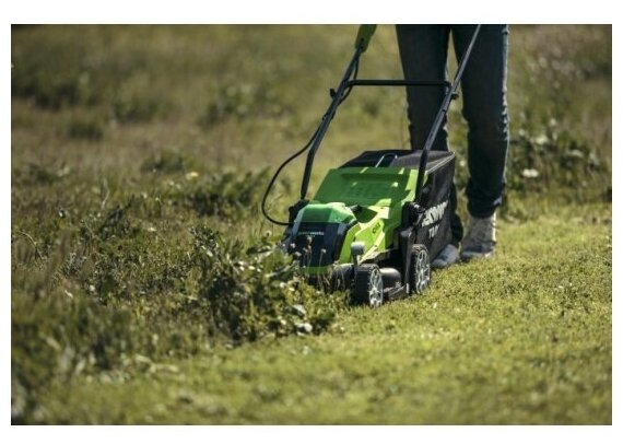Газонокосилка аккумуляторная G-MAX 40V GREENWORKS G40LM35K4 - готовый комплект состоящий из газонокосилки аккумуляторной Greenworks линейки 40V , аккумуляторной батареи 4 А/час и зарядного устройства. Это стартовая модель в линейке аккумуляторных газонокосилок Greenworks 40V. Ширина скашивания у этой косилки 35 см, она обладает функцией мульчирования и сбора травы в травосборник. Сам сборник травы объемом 40 литров и имеет металлический каркас. Что сделает вашу работу на приусадебном участке легкой и приятной. Удобная и маневренная газонокосилка с малым весом, низким уровнем шума. Отсутствие необходимости использовать взрывоопасный бензин, обслуживать её. К тому же, вы не будете вдыхать вредные выхлопы CO2, тем самым сохраняя свое здоровье и здоровье окружающей среды. Для надежности корпус газонокосилки выполнен из специального “мягкого” пластика, при попадании в который, небольших камней, он не трескается. Есть регулировка высоты скашивания от 32 мм до 85 мм с приводом на все колеса. Важной особенностью этой газонокосилки является система защиты двигателя от механических повреждение, например при наезде на твердый предмет. Время автономной работы - до 600 м² от 4 А.ч. батареи. Для защиты от случайного включения, предусмотрен специальный ключ безопасности и кнопка-предохранитель. Для удобства хранения ручка газонокосилки складывается. Газонокосилка работает от аккумуляторной батареи G-MAX 40V (4 А/ч. в комплекте).