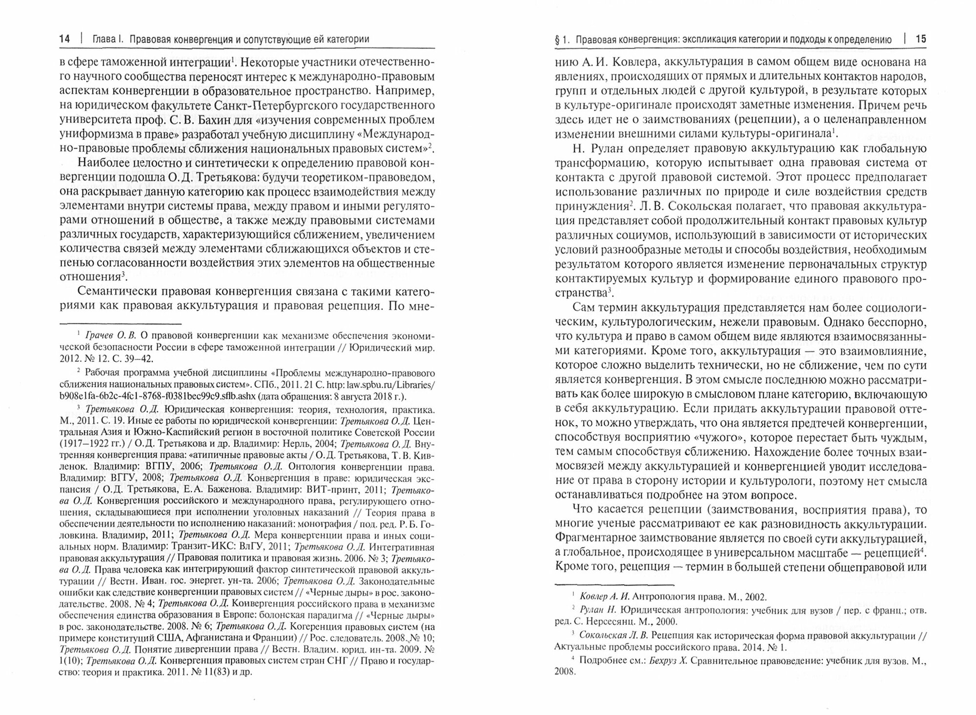 В настоящей работе исследованы процессы правовой конвергенции с позиций меж-дународно-правовой доктрины и практики: каким образом, с помощью каких правовых средств и в каких формах международное право сближает национальные правовые системы. Особый акцент сделан на теоретических аспектах правовой конвергенции и анализе ее сложной и комплексной природы в свете сопутствующих ей категорий: глобализации, универсализации и фрагментации, наднациональности и суверенитета.
