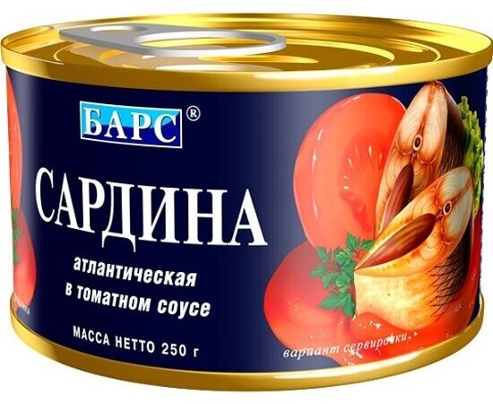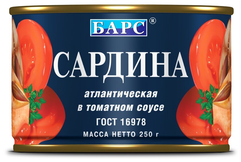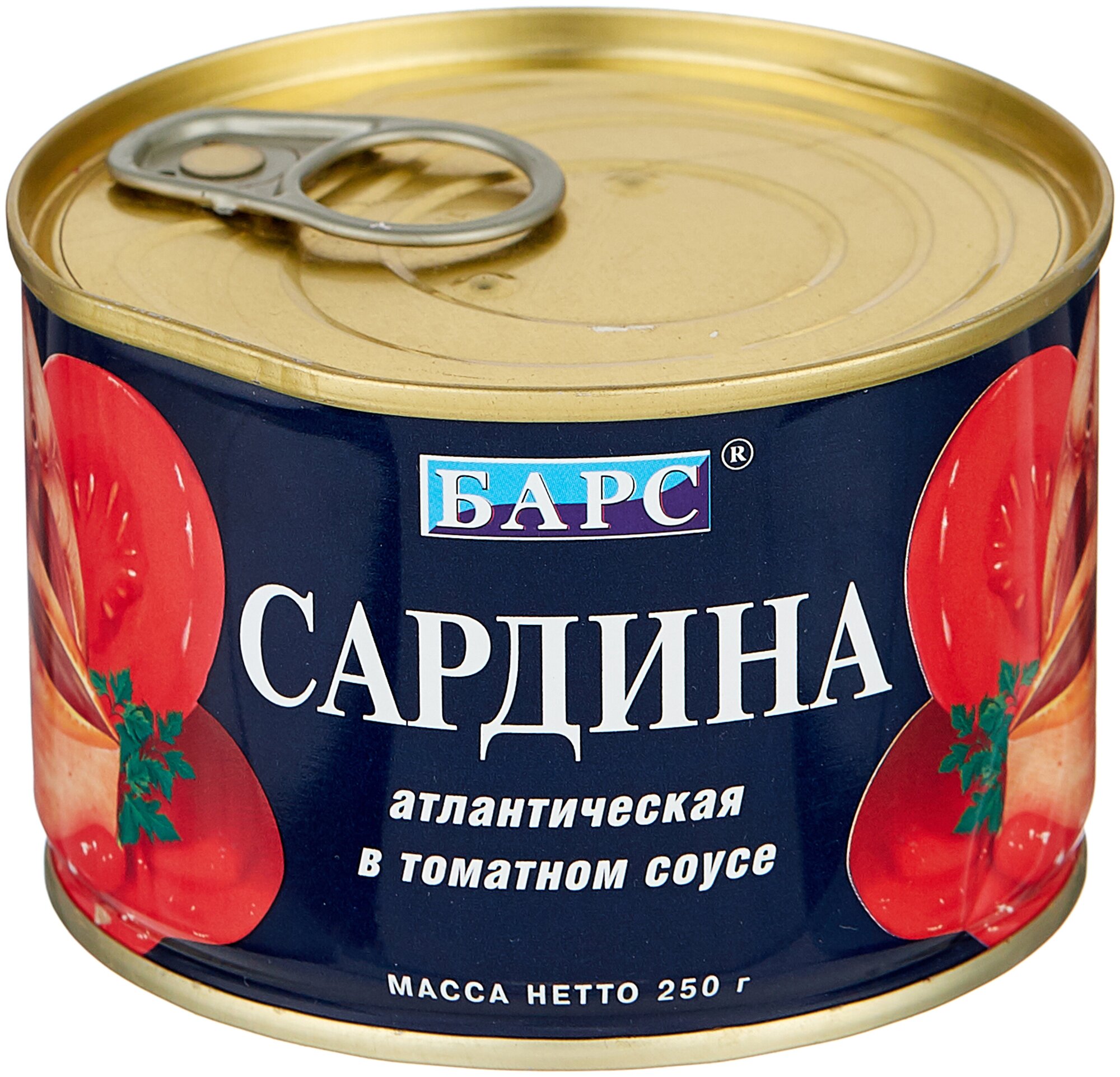 Сардина барс Атлантическая в томатном соусе, ГОСТ - это не только природный источник белка и микроэлементов, но и важнейших для человеческого организма полиненасыщенных жирных кислот Омега 3 и Омега 6. Сочетается с различными овощами, морепродуктами, рисом, пряностями, оливками. Используется как самостоятельное блюдо, в приготовлении первых, вторых блюд, салатов, закусок.Состав: Рыба, томатная паста, сахар, масло растительное, лук, мука пшеничная, соль, регулятор кислотности - кислота уксусная, экстрактпряностей.