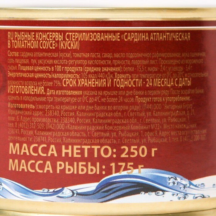 - Рыбные консервы "Сардина атлантическая в томатном соусе" "За Родину"