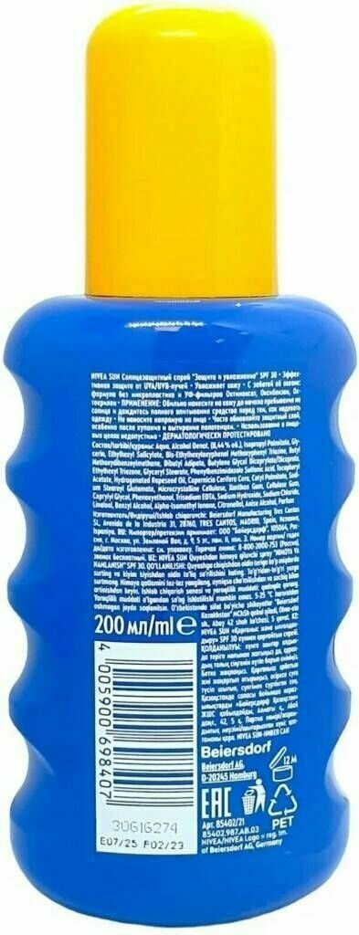 Ухаживающая формула солнцезащитного спрея "Защита и увлажнение" SPF 30 поддерживает защитный барьер кожи и увлажняет ее. Водостойкий. Биоразлагаемая формула.