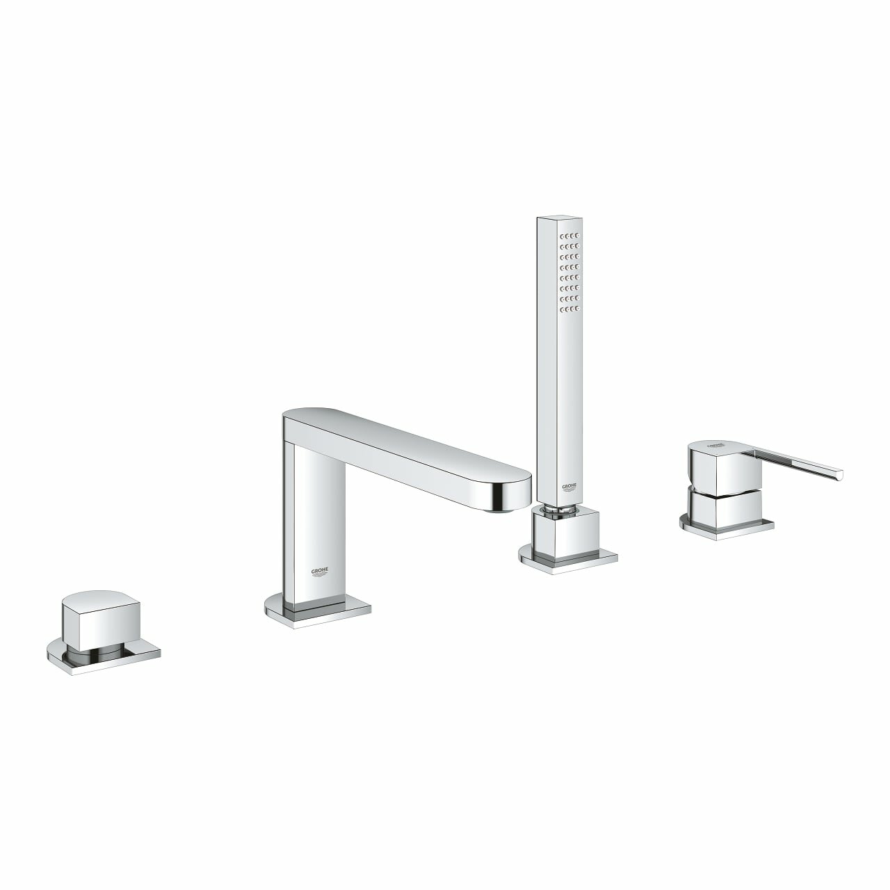 Смеситель однорычажный для ванны на 4 отверстия, хром. GROHE SilkMove керамический картридж 35 мм, с ограничителем температуры, GROHE StarLight хромированная поверхность, включает в себя: излив с ламинарной струей, элемент управления однорычажного смесителя, металлический рычаг, переключатель ванна/душ, Euphoria Cube Ручной душ 6,6 л/мин, металлический душевой шланг 2000 мм, гибкая подводка, подключение для душевого шланга, с защитой от обратного потока, может быть использован с 29 037 002, минимальное давление 1,0 бар.