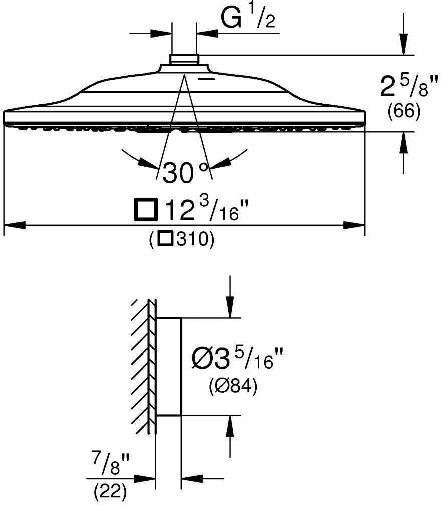 | Диаметр верхнего душа (мм) | 310 |