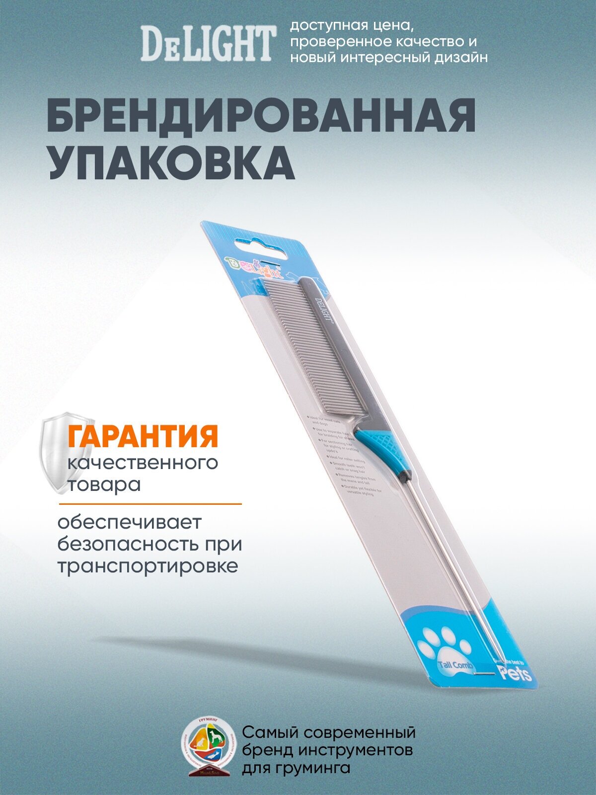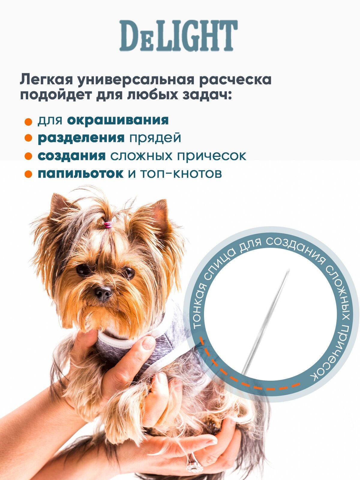 Расческа для животных DELIGHT со спицей имеет 47 зубьев. Расчёски со спицей предназначены для создания фигурных проборов, а также для распределения локонов, при подъёме и выделении отдельных прядей. Удобны для создания топ-кнотов и папильоток. Игла спицы затупленная, чтобы не травмировать и питомца, и мастера. Подходят для всех видов шерсти.