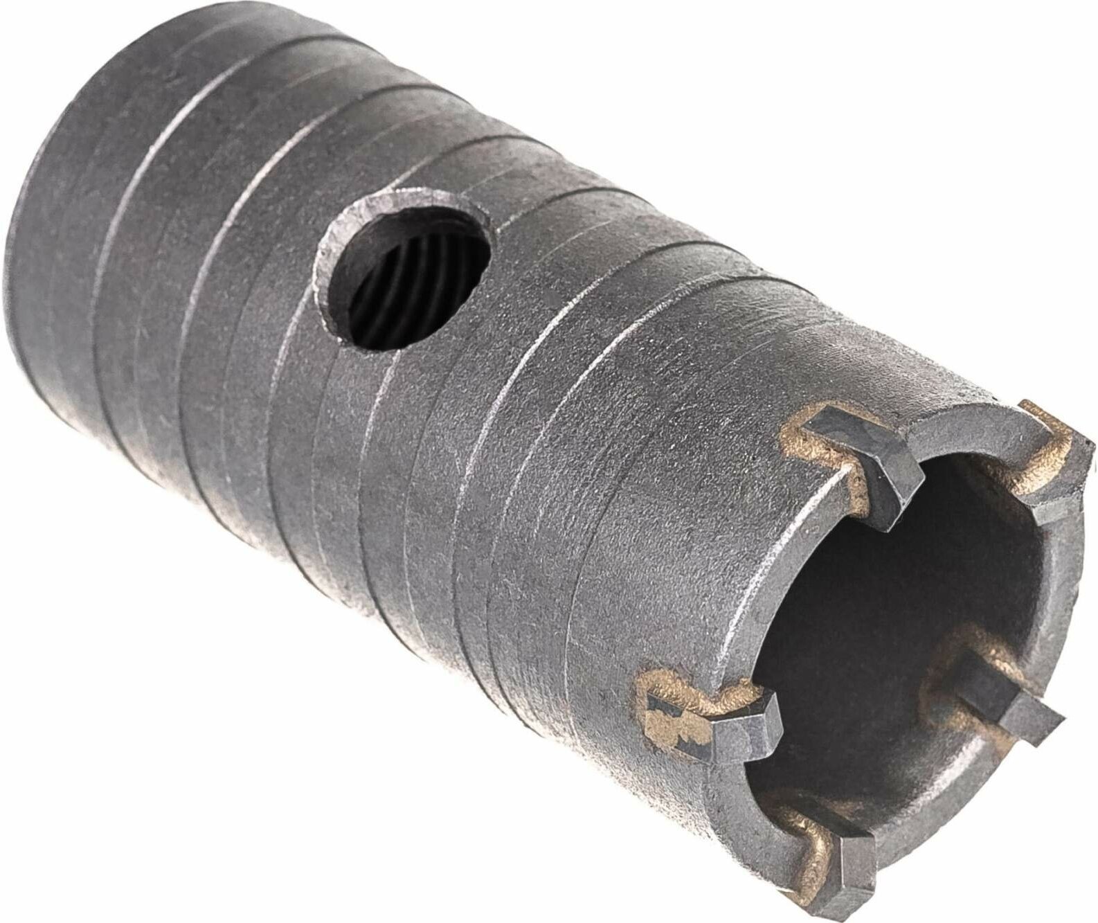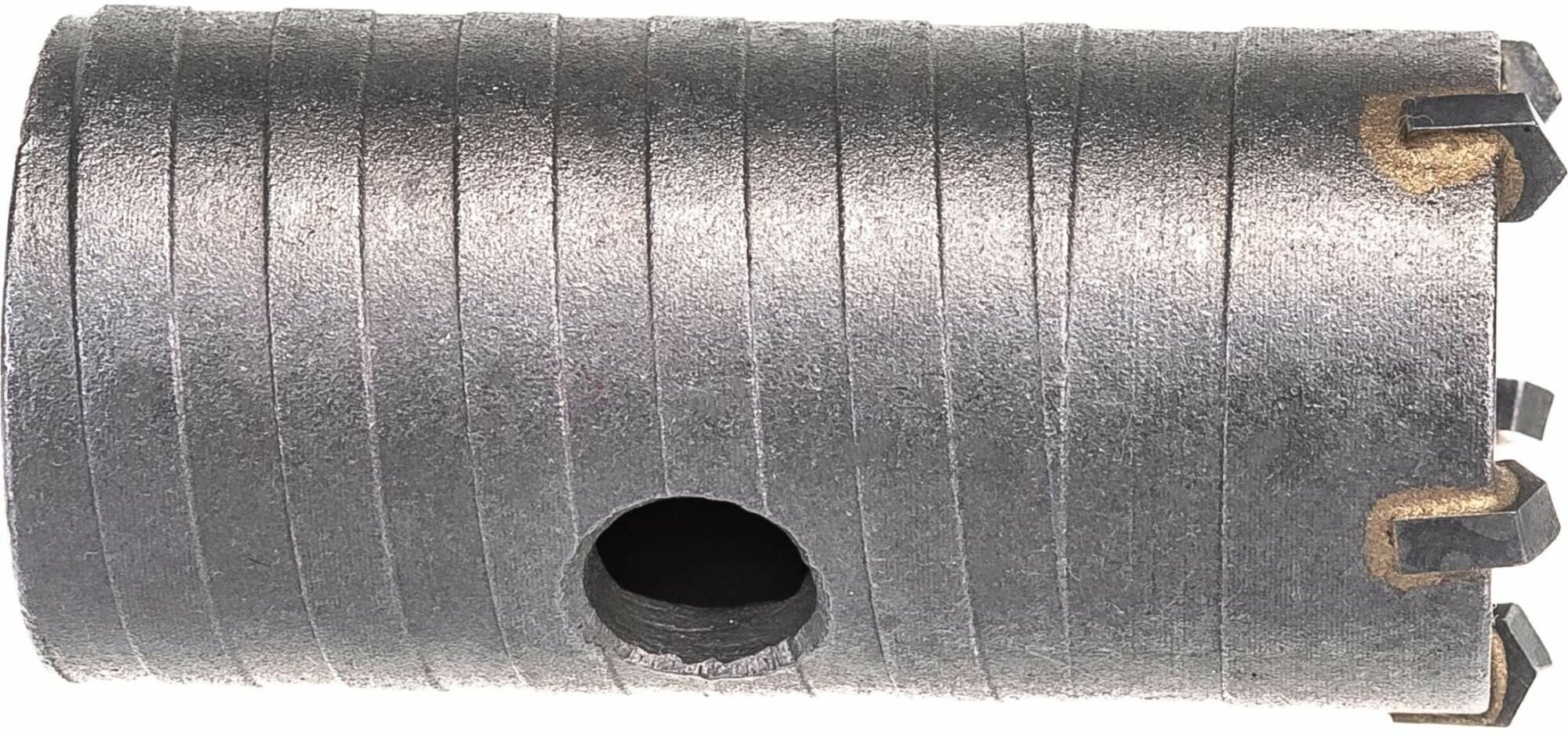 Твердосплавные зубья из сплава ВК85. Высокоуглеродистая конструкционная сталь. Спиралевидная резьба для улучшеннного пылеудаления продуктов сверления.